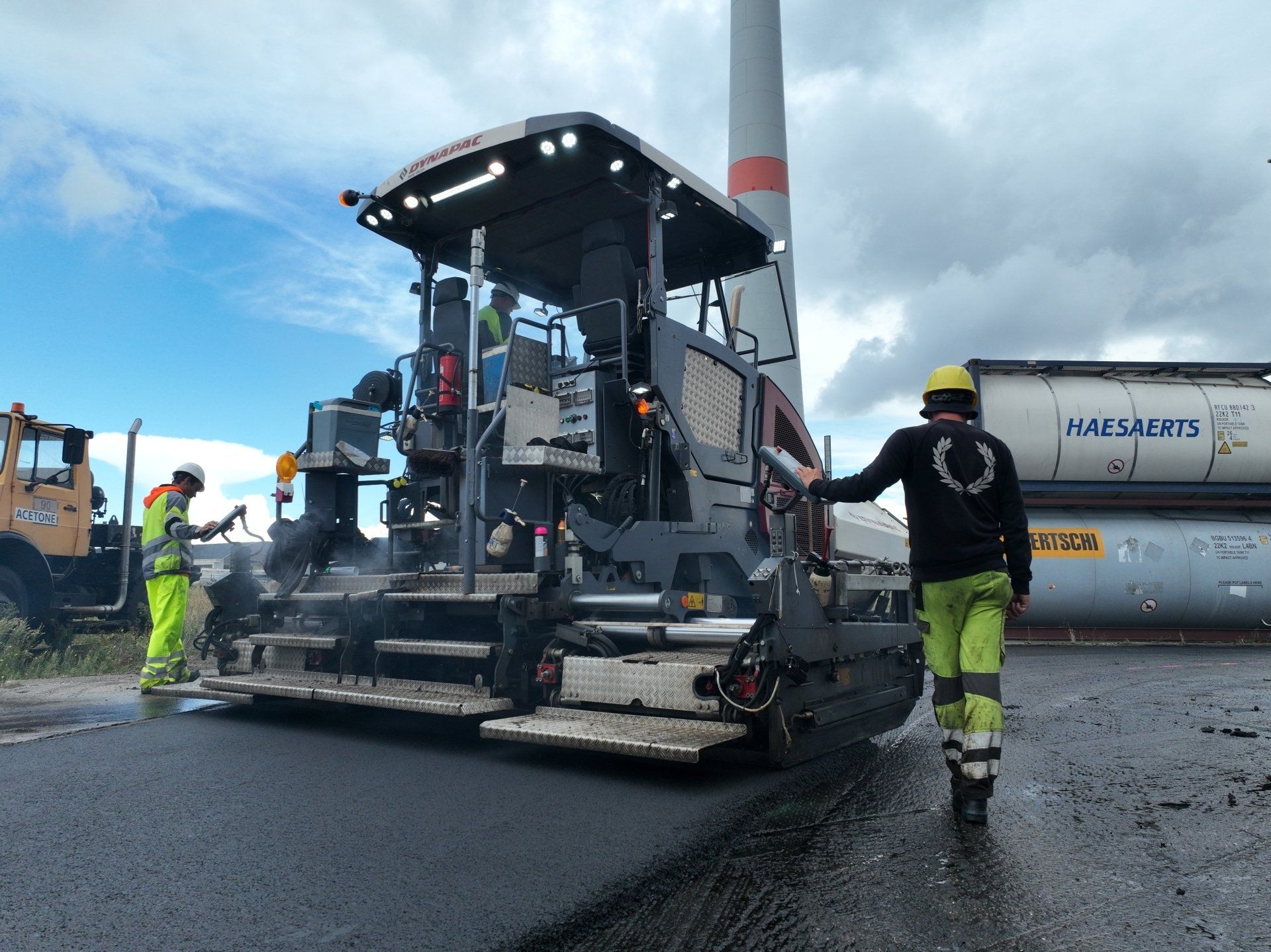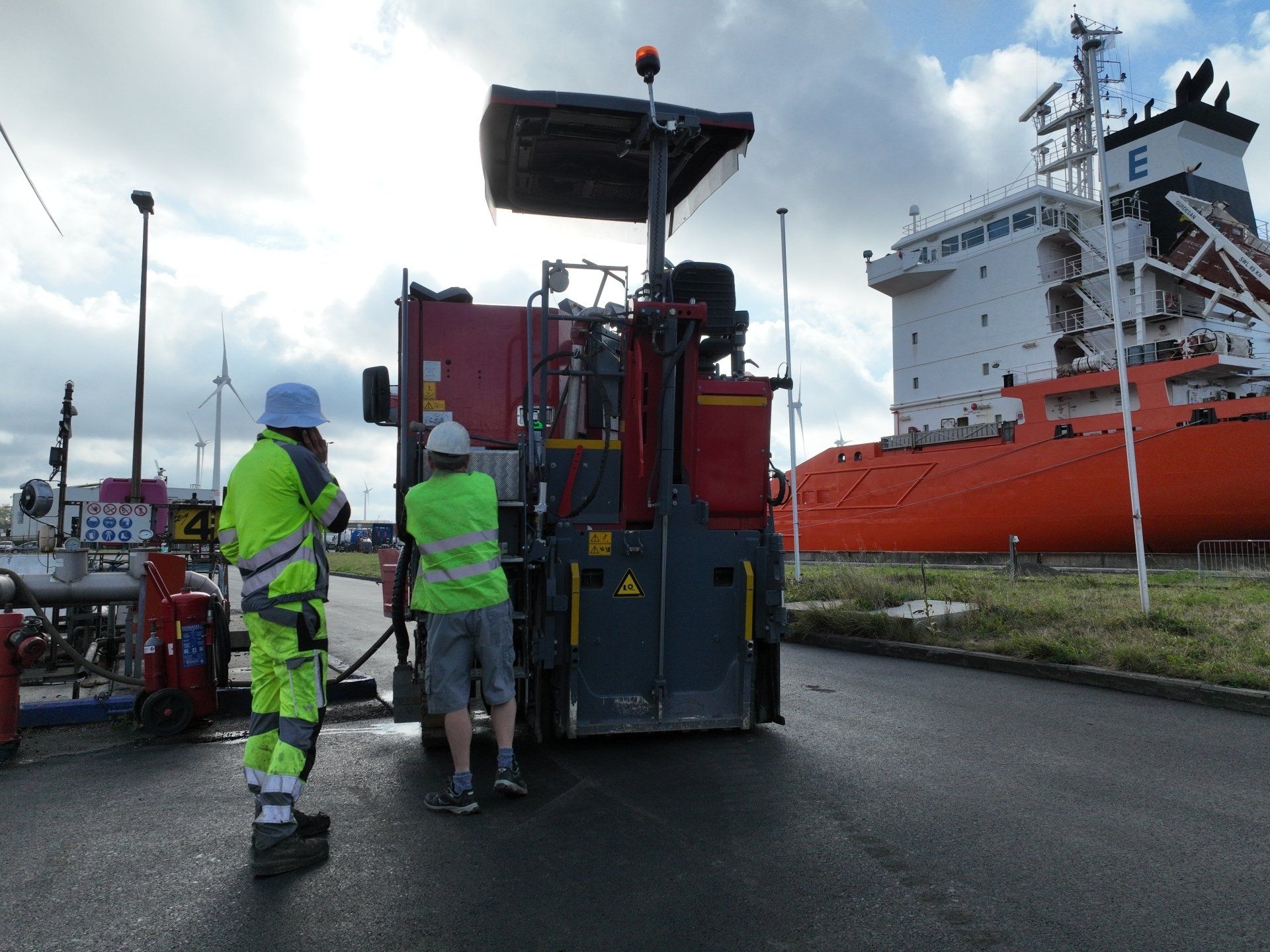 Asfalteerwerken met gebruik van slurry op de haventerminal van Vesta: