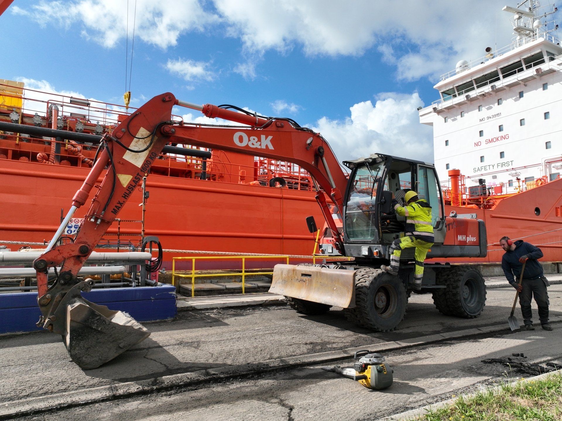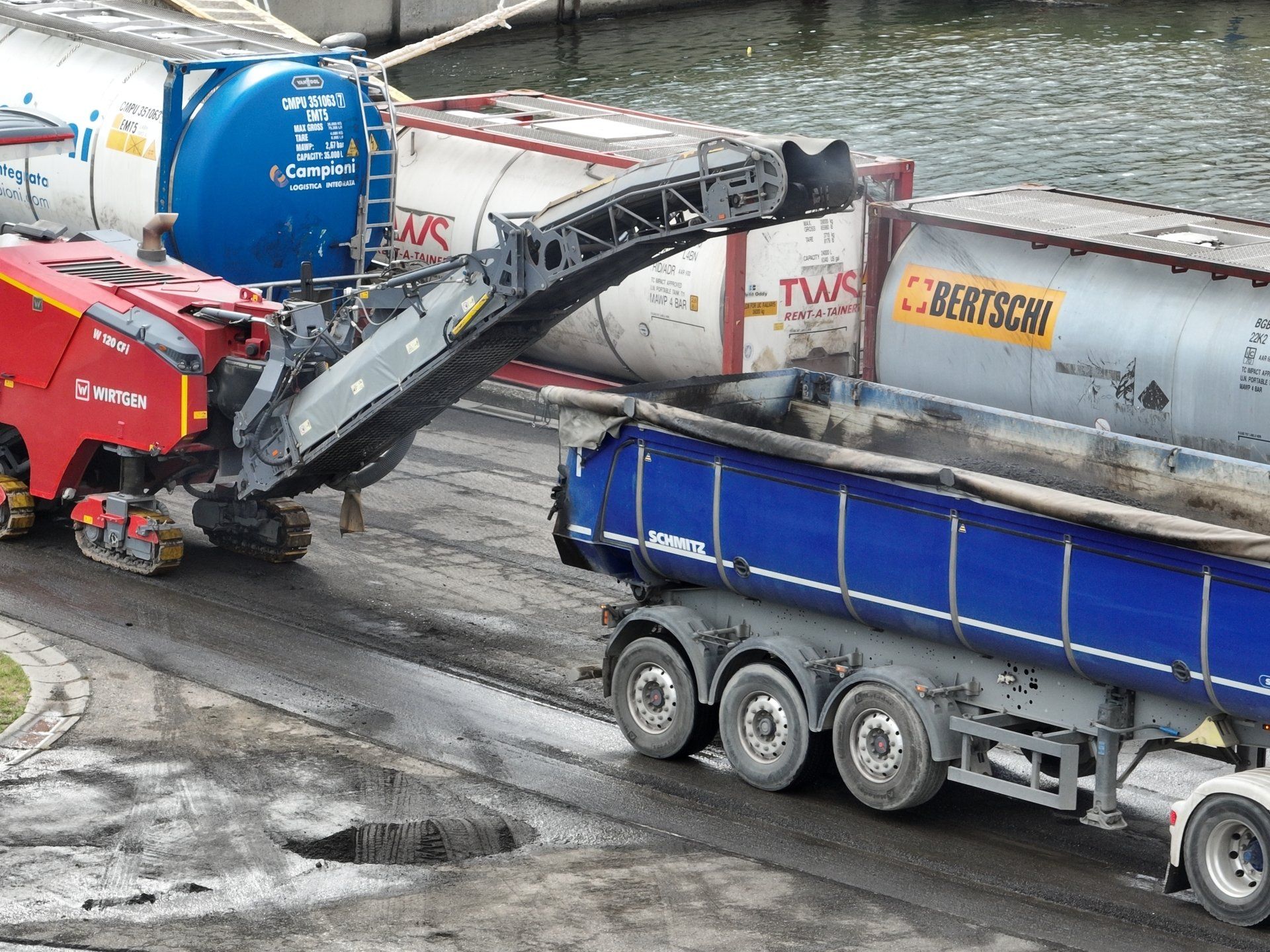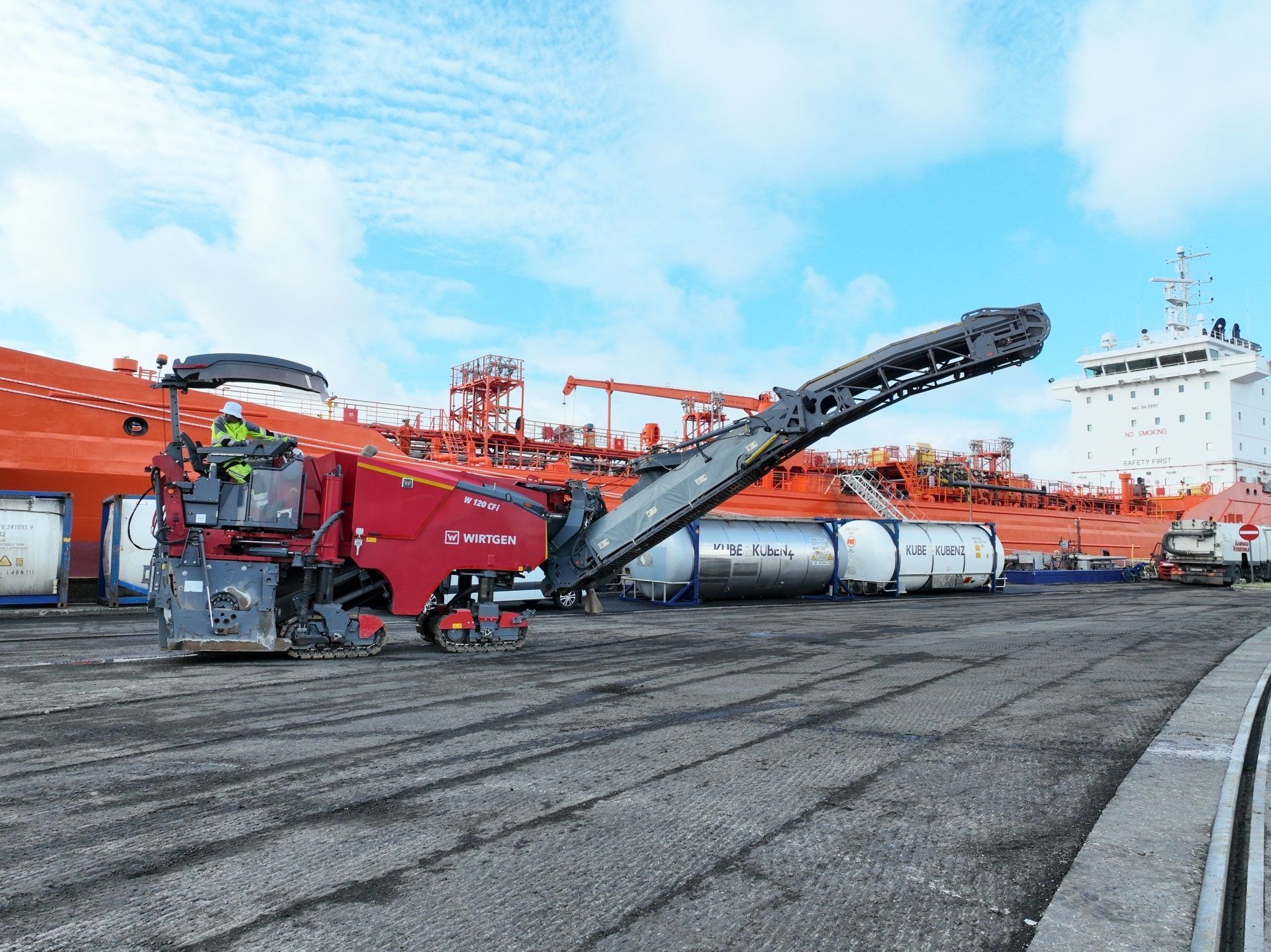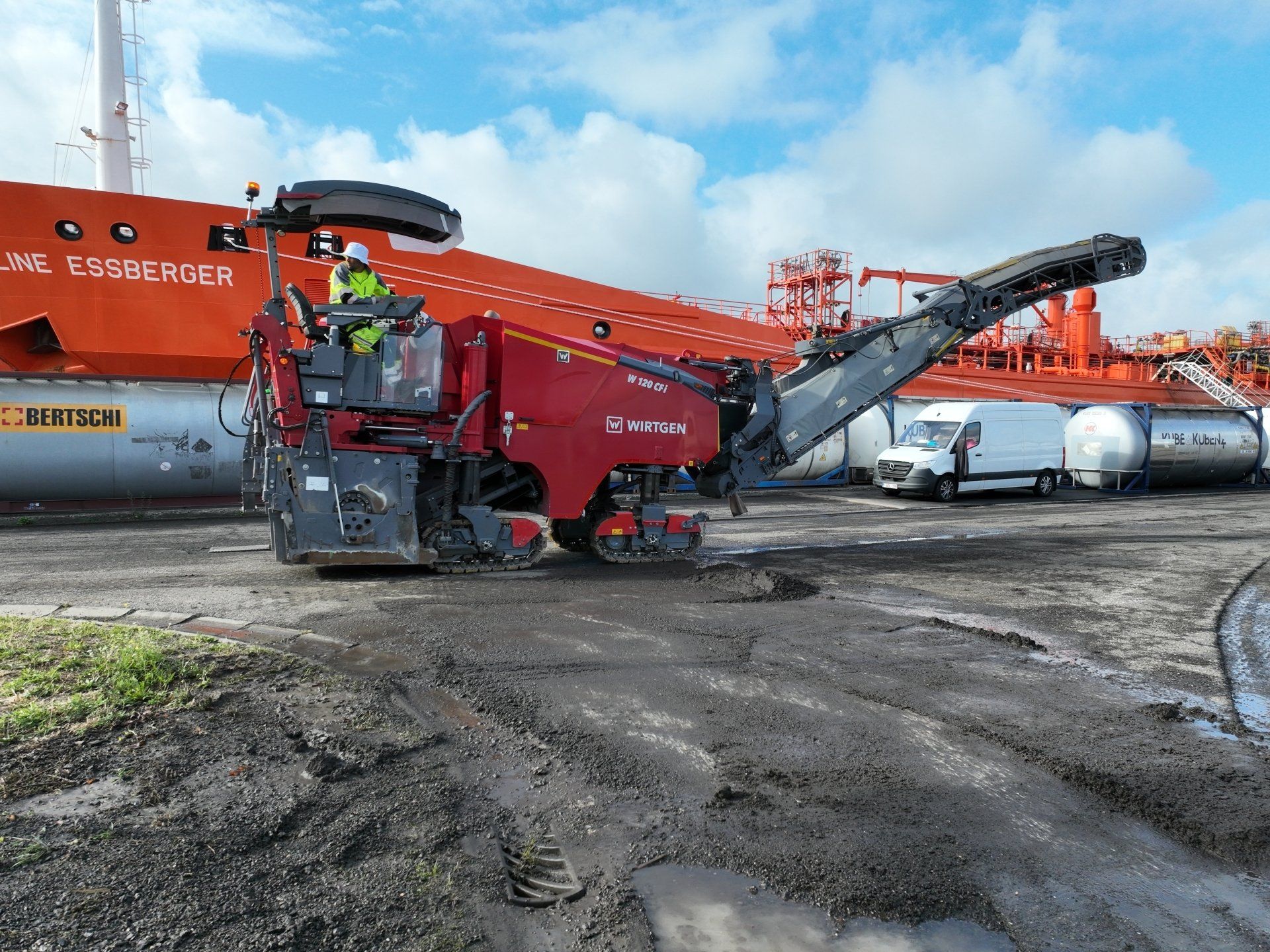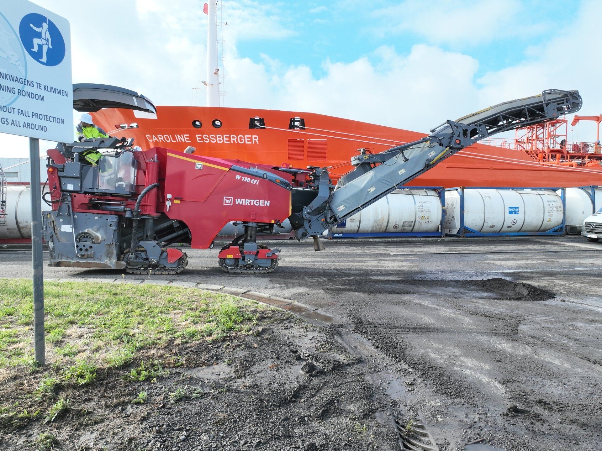 Frees- en asfalteerwerken op de terminal van Mac2 in de Antwerpse haven: