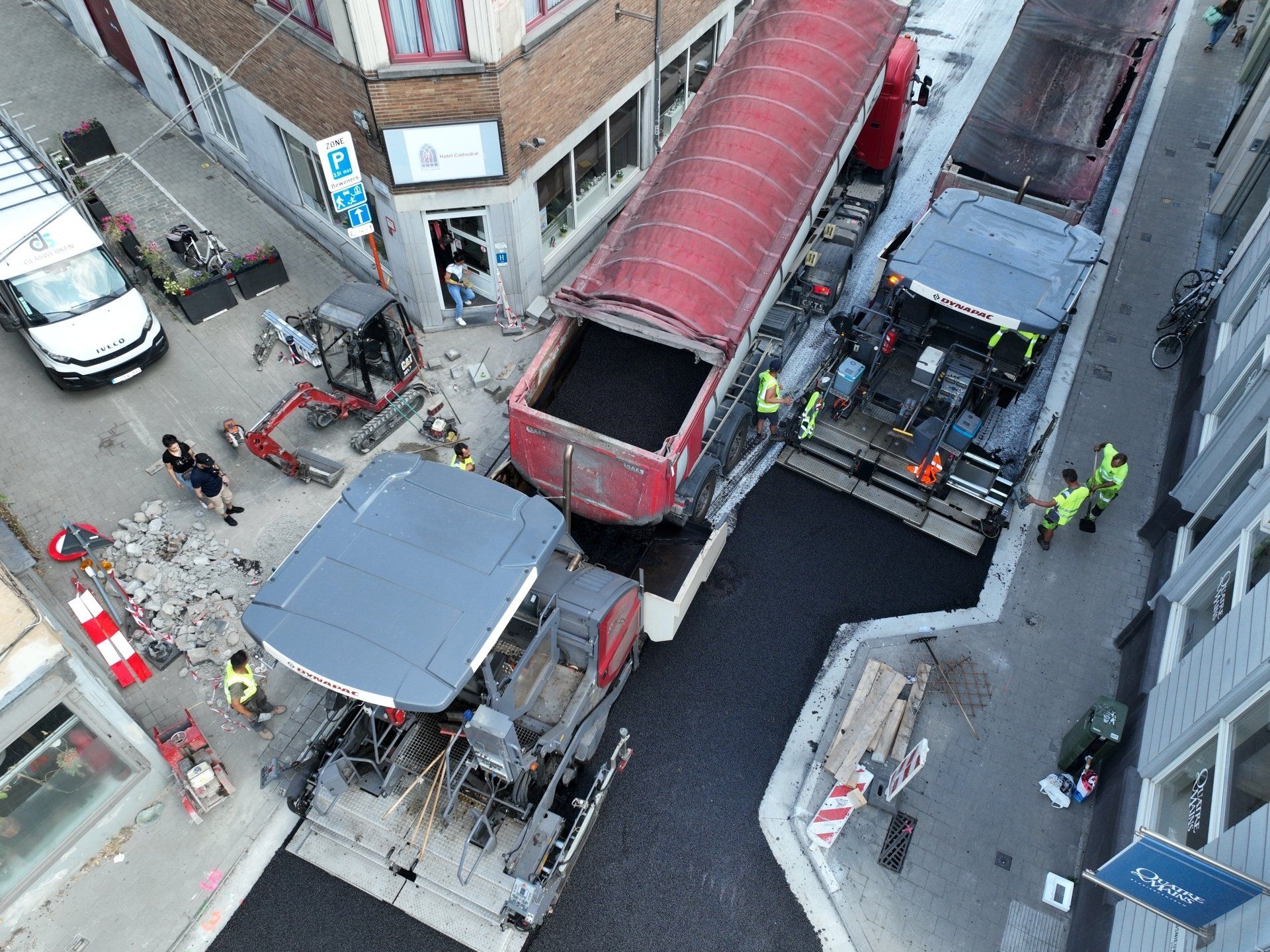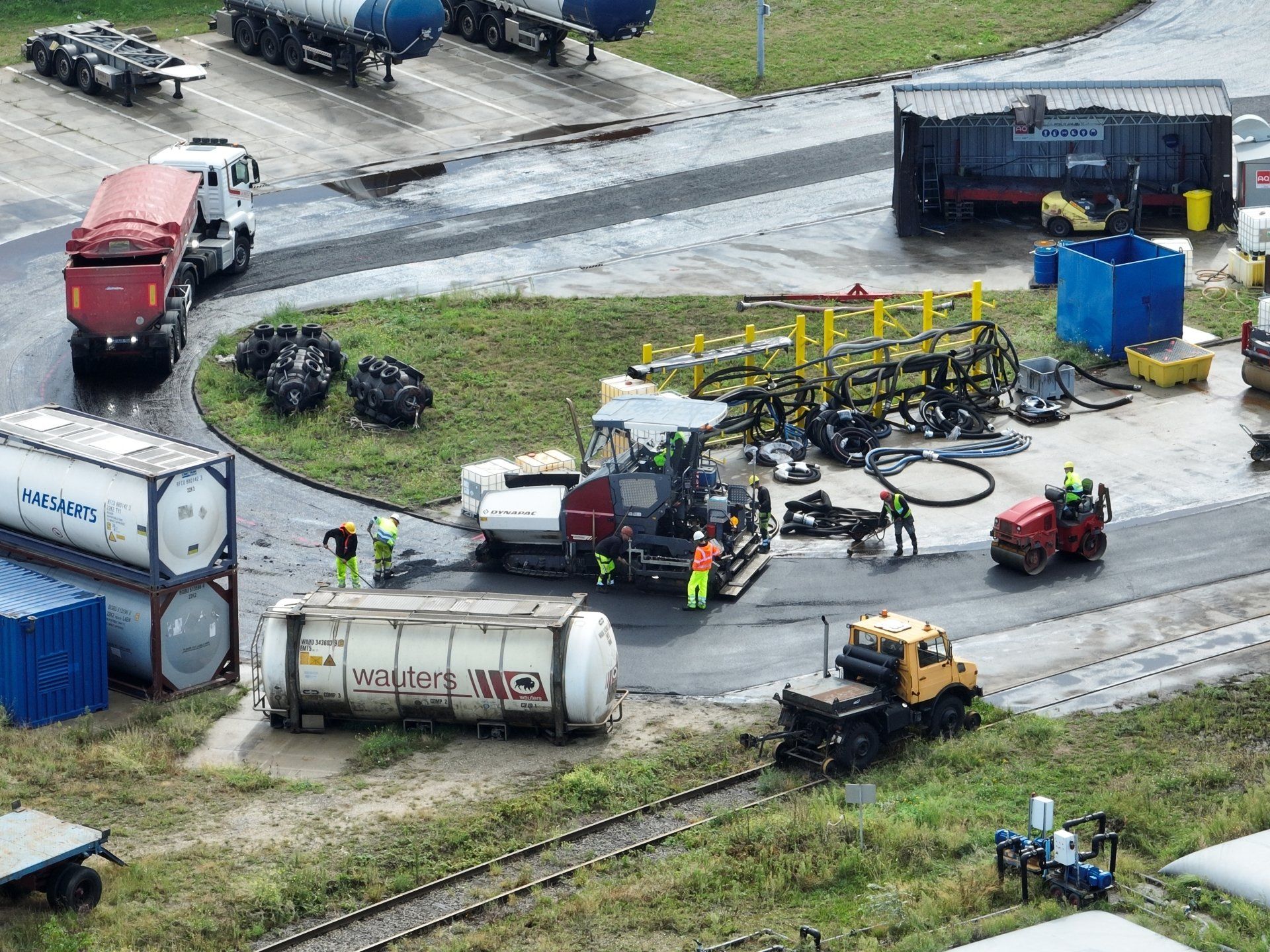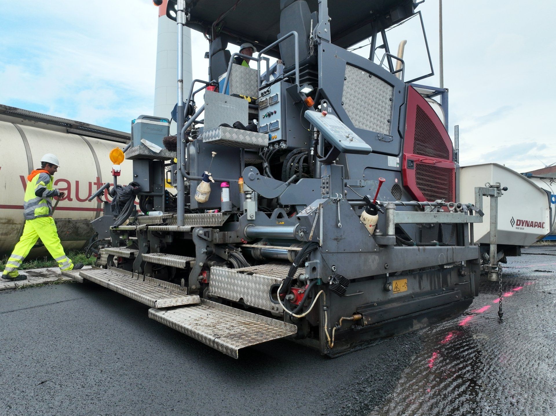 We beschikken over een eigen machinepark voor het asfalteren van grote oppervlaktes, met een minimumbreedte van 2.5 m tot een maximumbreedte van 6.5 m. Per machine kan tot 1000 ton asfalt per dag verwerkt worden. Dit komt overeen met een oppervlakte van 10.000m² aan een gemiddelde asfaltdikte van 4 cm.