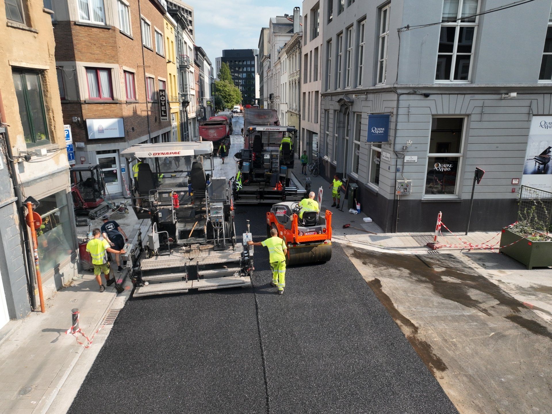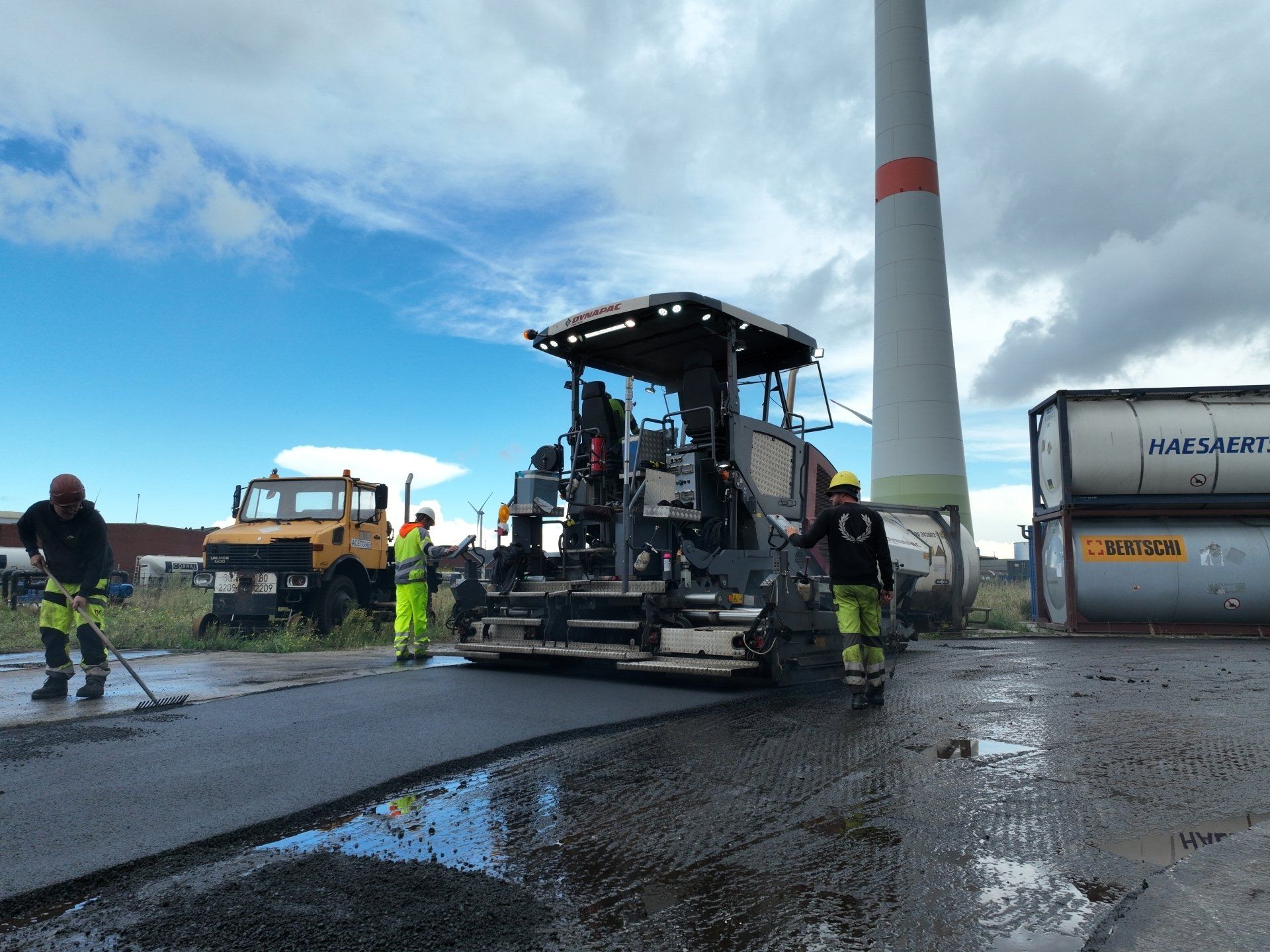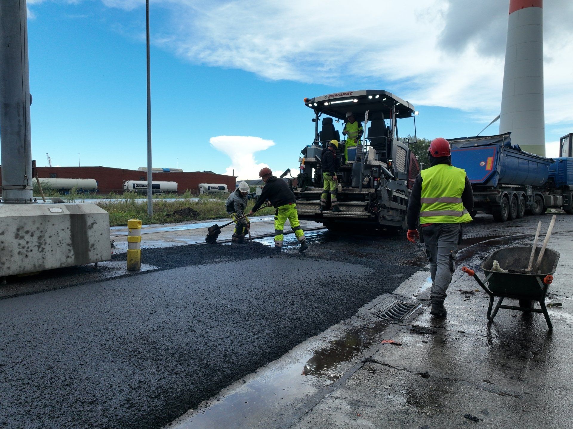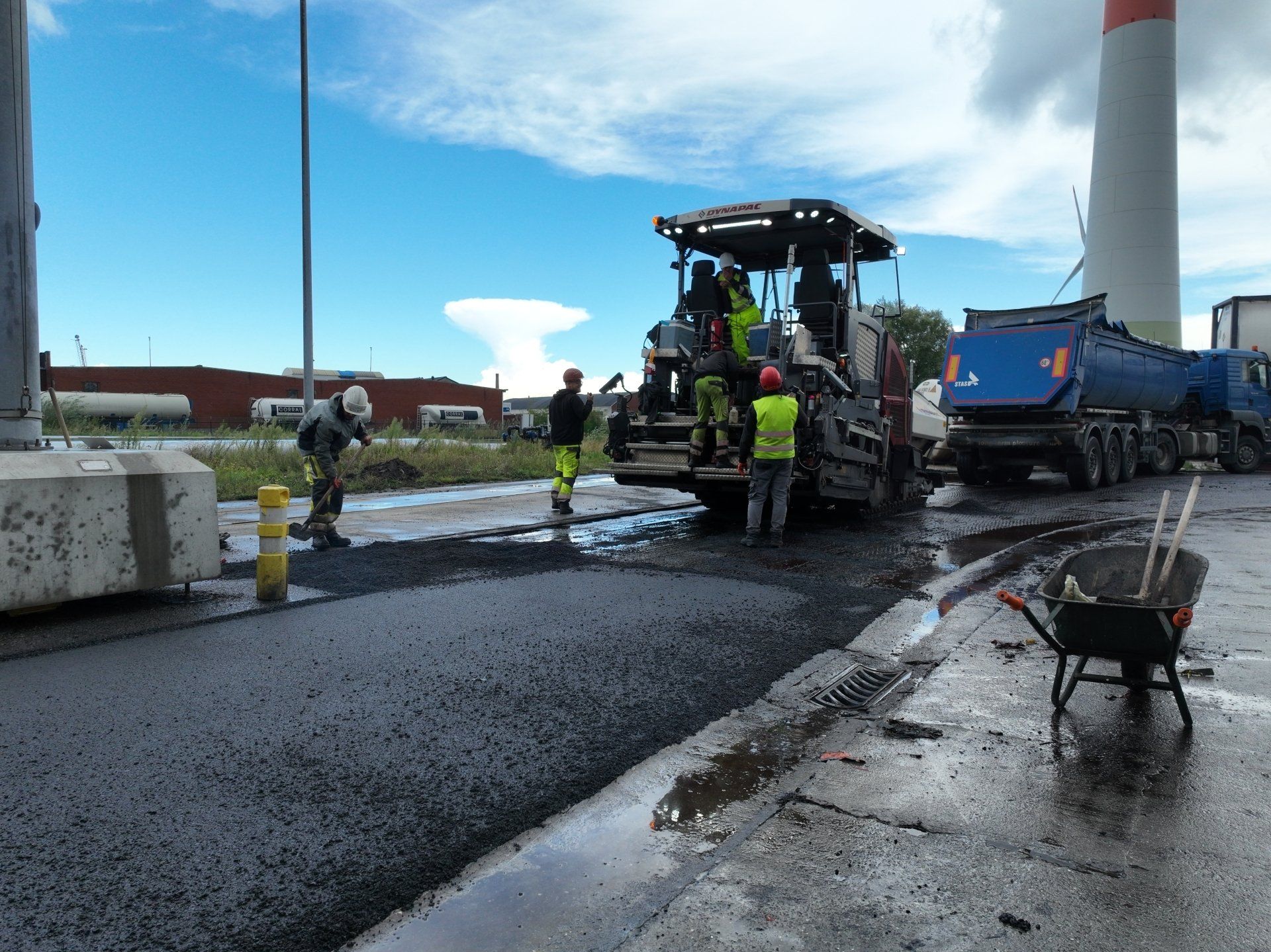 We beschikken over een eigen machinepark voor het asfalteren van grote oppervlaktes, met een minimumbreedte van 2.5 m tot een maximumbreedte van 6.5 m. Per machine kan tot 1000 ton asfalt per dag verwerkt worden. Dit komt overeen met een oppervlakte van 10.000m² aan een gemiddelde asfaltdikte van 4 cm.